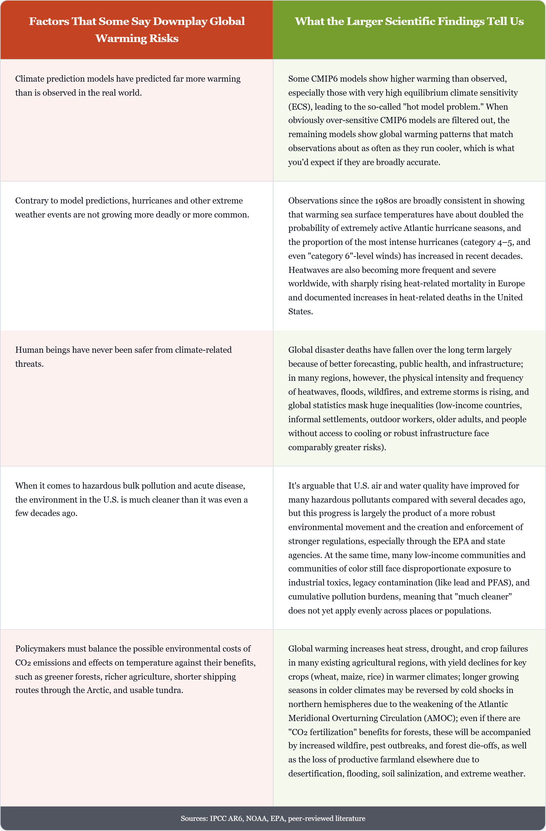 Conservatives with the Heritage Foundation, positing that concerns about climate change are overblown, highlight the following claims: